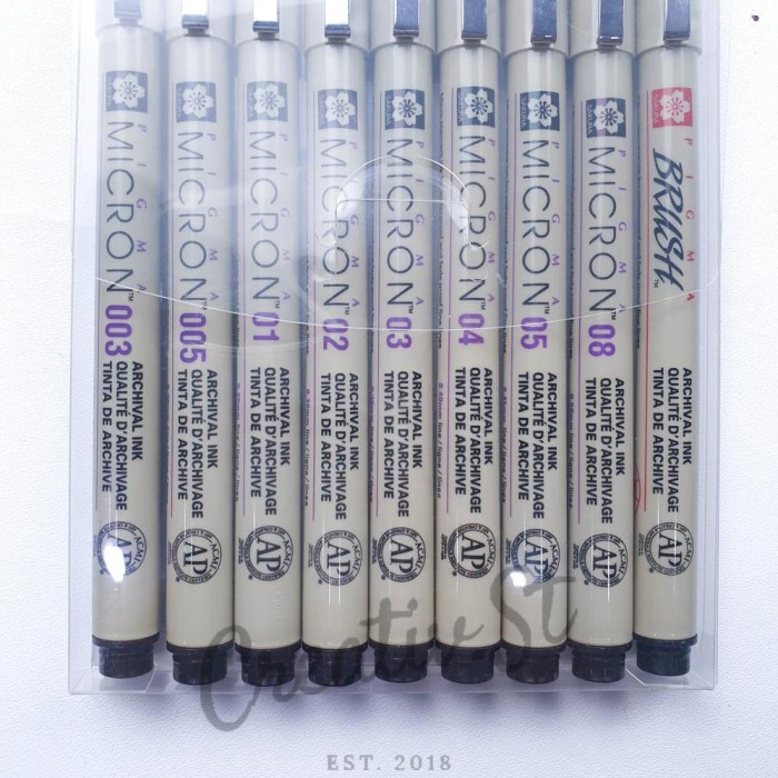 Tinta Pigma, ditemukan oleh Sakura lebih dari 25 tahun yang lalu, dan menjadi tinta permanen yang paling dapat diandalkan di pasaran saat ini. Tinta ini memiliki karakter tahan air, tidak pudar, bebas asam, dan tidak tembus pada sebagian besar jenis kertas. Warna dari tinta akan bertahan seumur hidup, sehingga Pigma Micron dijadikan alat tulis yang diperlukan untuk proyek tulisan tangan berkualitas arsip.