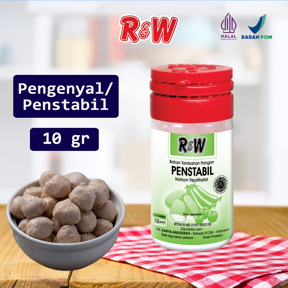 Pengenyal Penstabil Rajawali R&W RW digunakan Untuk mengenyalkan daging dengan cara mengembalikan daya serap air pada daging atau adonan sehingga lebih mudah menyerap dan manahan bumbu yang diberikan.