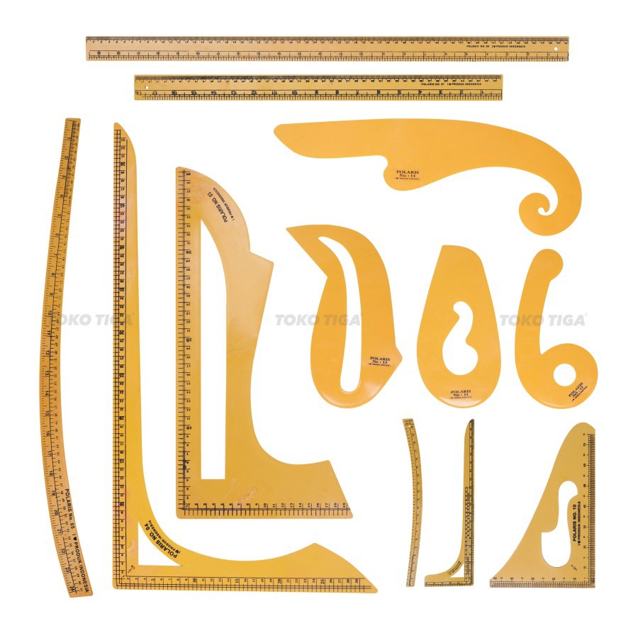 Penggaris Pola Set / Pattern Ruler POLARIS Isi 9 Set 12 Pcs (PSC-01)