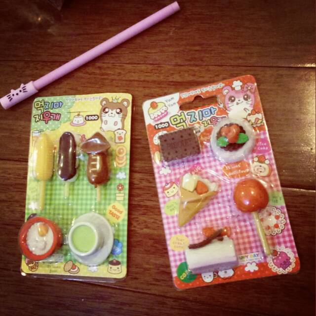Penghapus set grill (kiri) dan set dessert (kanan). Harga untuk 1 set isi 5 penghapus.