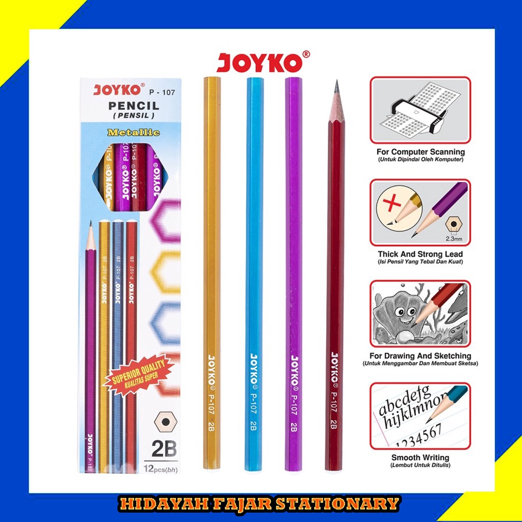 Pensil Pencil Joyko P-107 Metallic 2B 1 Box 12 Pcs