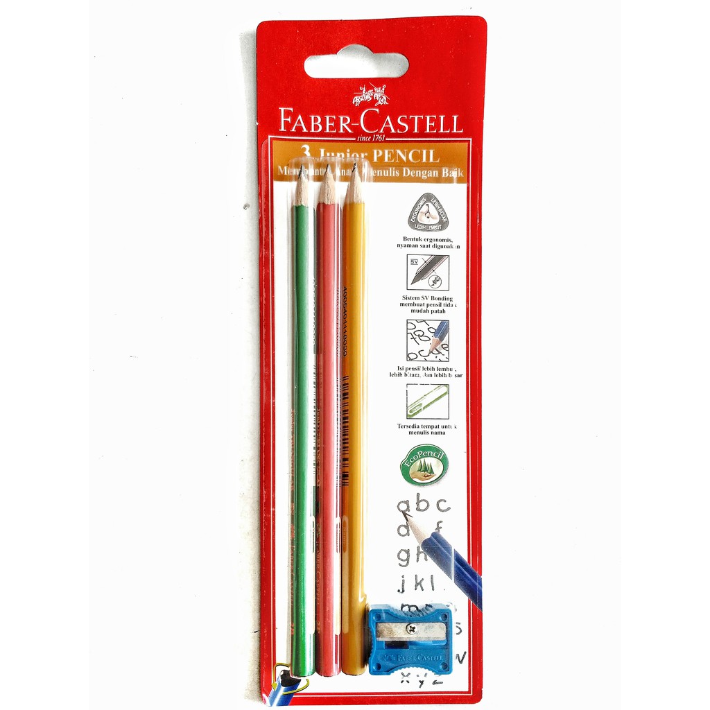 Pensil Kayu FABER CASTELL Junior Triangular Set (3Pcs) + Rautan