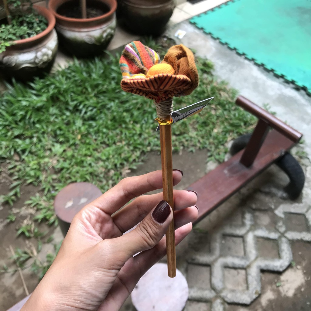 Pensil Kayu dengan ornamen kain lurik berbentuk bunga, merk LAWE.
