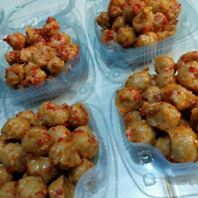 Pentol buatan rumahan yg sehat tanpa bahan pengawet dan enak super pedes bgt , 1 porsi 10000 rbu minimal order 5 porsi ya sis , ini pentolnya rasa daging sapi yang super super enak kerasa bgt daging nya , mohon chat sblm membeli
