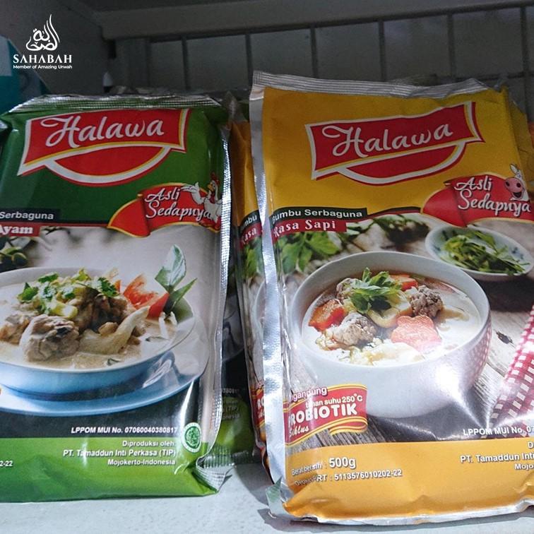 Halawa kaldu bubuk probiotik merupakan pengganti penyedap rasa MSG konvensional. Kaldu sehat Halawa hadir dengan 2 varian rasa yakni rasa ayam dan rasa sapi. Kaldu instan Halawa terbuat dari bahan-bahan alami yang terbebas dari pestisida. Bahan utama diperoleh dari daging ayam dan daging sapi asli yang terjaga kesegaran dan kehalalannya, bukan sekedar perasa daging. Selain itu, kaldu bubuk Halawa hanya mengandung sedikit garam sehingga aman bagi penderita hipertensi.