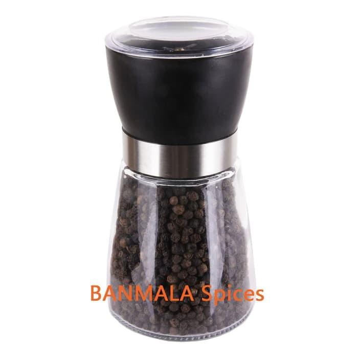 Selamat Datang Di Toko Kami :) Lada Hitam, Black Pepper 80g biji/black peppercorn dalam gilingan gerinda keramik botol kaca (paket 2 in one)