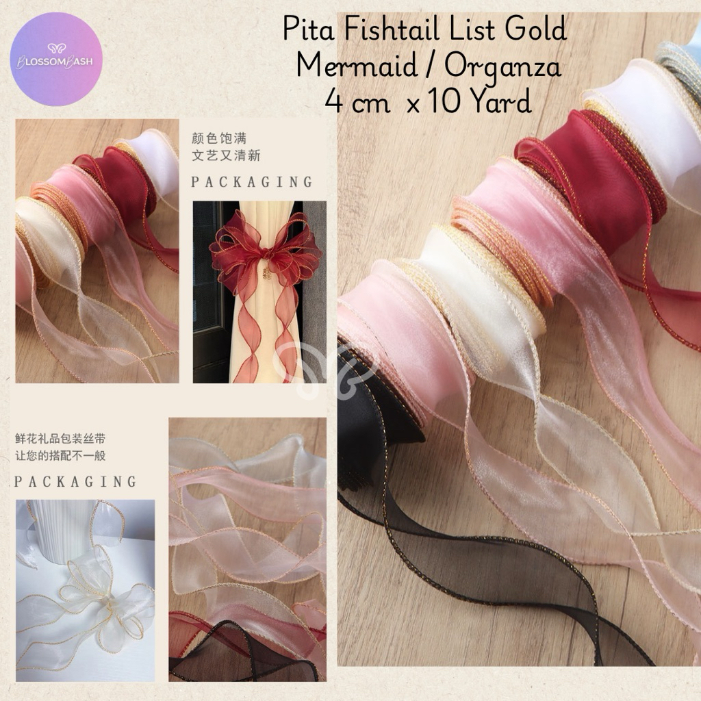 [ Per Meter ] Pita Fishtail List Gold / Organza Ribbon