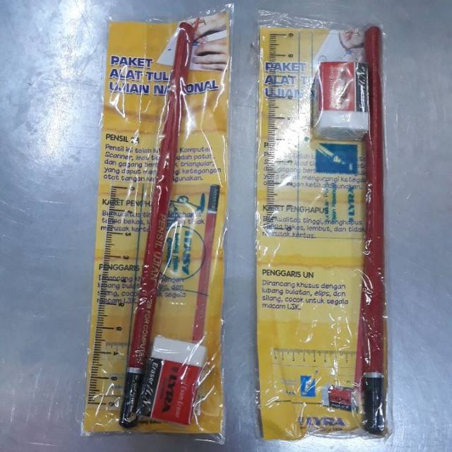 Pinsil 2B, penghapus, dan penggaris