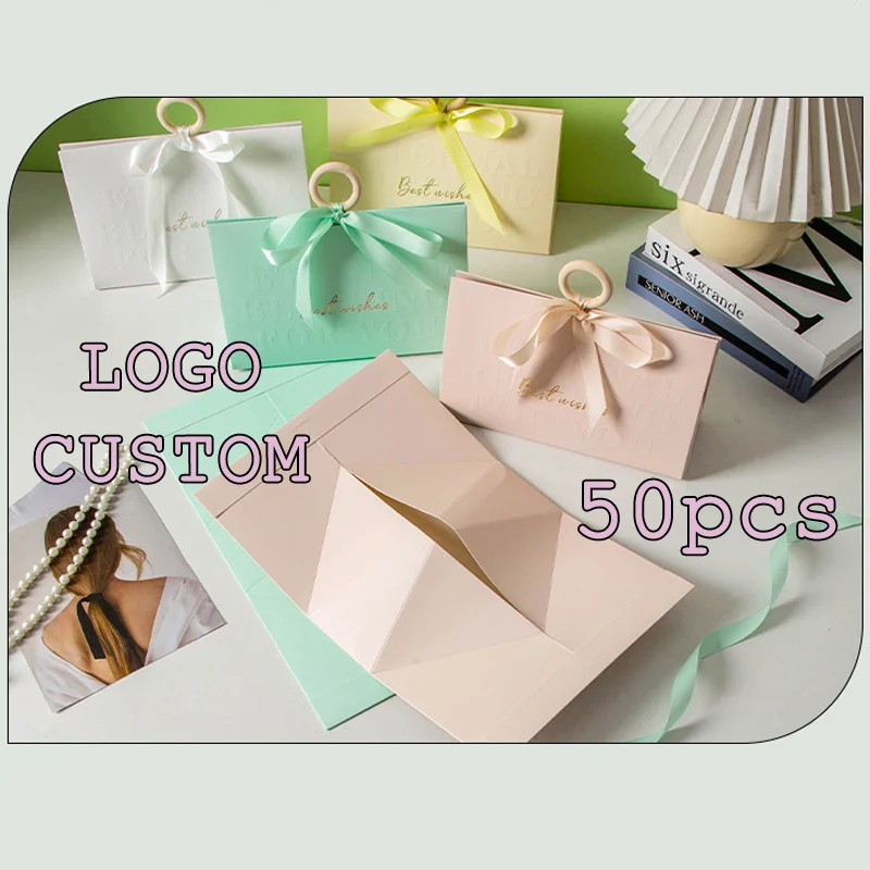 Perfect Gift Box For Special Occasions Logo Customize 50Pcs Hair Wig Packing Box With Handle Ribbon