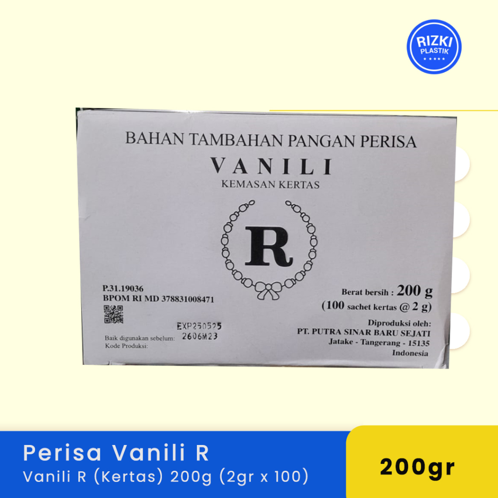 Perisa vanili R dengan berat bersih 200gr (2gr x 100), harga untuk 1 box