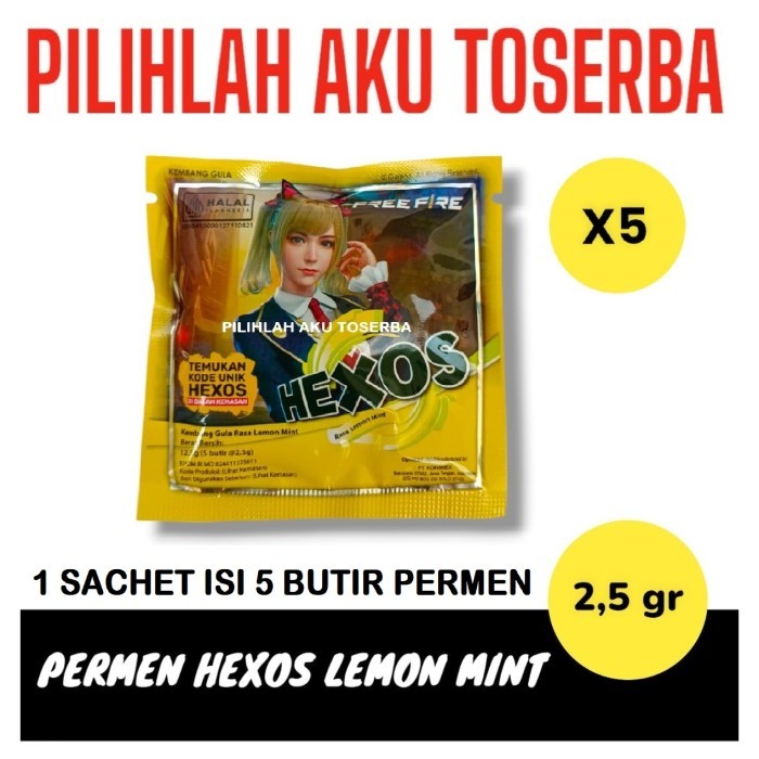 Permen HEXOS Rasa LEMON MINT - ( HARGA 5 SACHET )