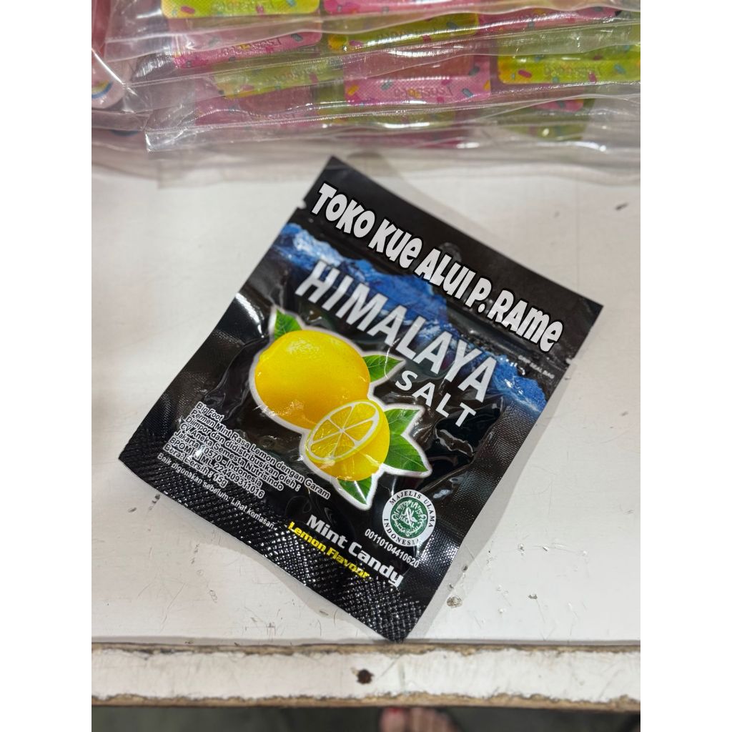 Informasi Produk: Permen ini memiliki nama "Permen Himalaya Salt Mint Candy Rasa Lemon".
