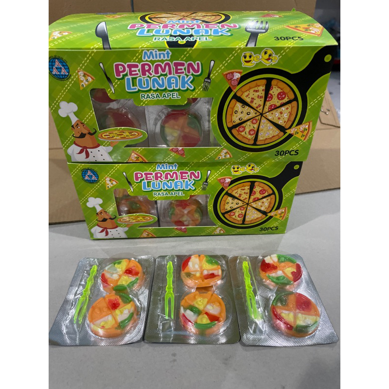 Permen Lunak Pizza Rasa Apel Hijau Box Isi 30Pcs