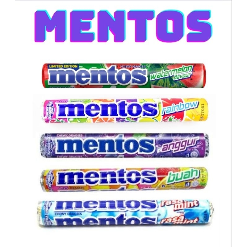 Mentos Roll adalah permen mint kunyah yang dikemas dalam bentuk roll. Permen ini memiliki lapisan keras di bagian luar dan lunak di bagian dalam. Mentos Roll tersedia dalam berbagai varian rasa, seperti mint, buah, anggur, dan rainbow.
