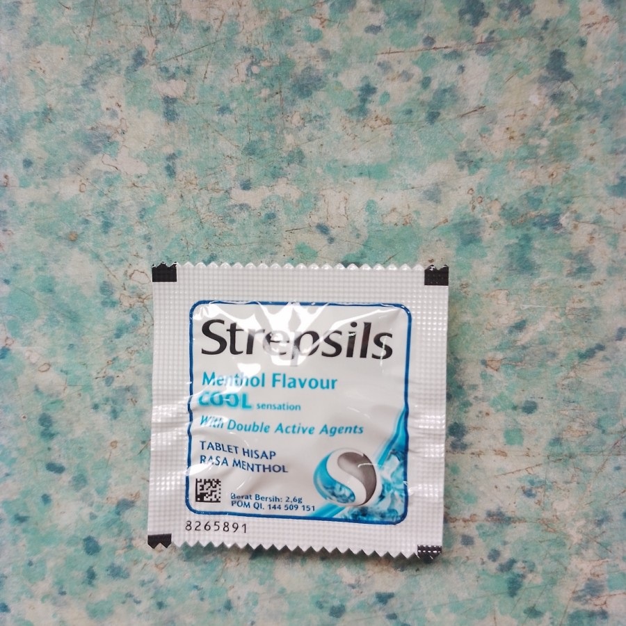 Permen Pelega Tenggorokan atau Tablet Hisap Rasa Menthol STREPSILS, harga tertera untuk 1 pcs seberat 2,6 gram