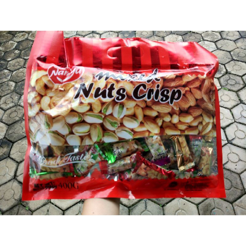 mixed nuts. permen kacang mewah (kacang almond, mete dan pistachio) kemasan 400gr. baru. expired 2022