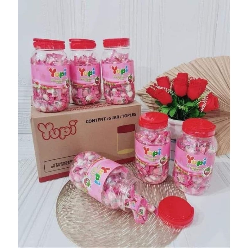 *PERMEN YUPI TOPLES STRAWBERRY KISS 300gram 1 toples isi 125