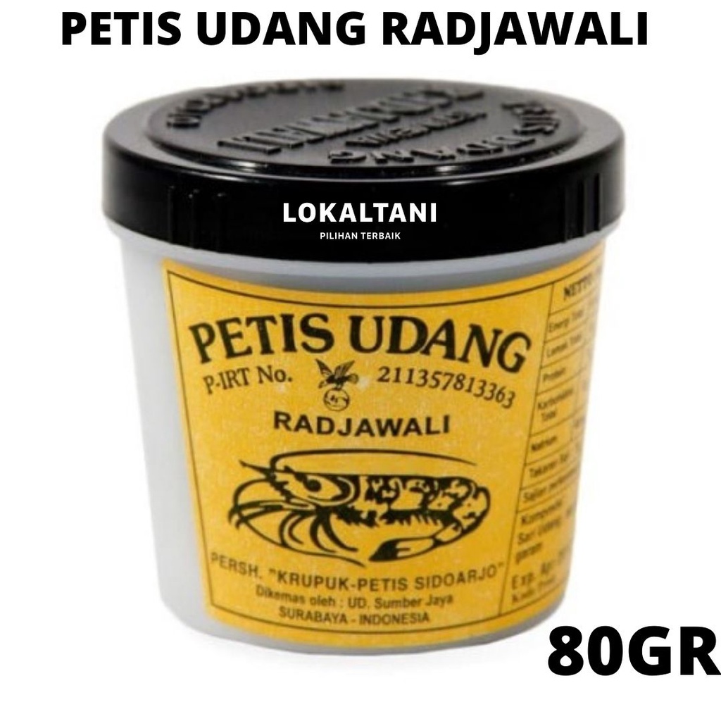 Petis Udang Radjawali Istimewa - Asli Sidoardjo Petis adalah bumbu masakan Indonesia yang dibuat dari produk pengolahan makanan berkuah (biasanya dari pindang, kupang, atau udang) yang dipanasi hingga cairan kuah menjadi kental seperti saus yang lebih padat. Dalam pengolahan selanjutnya, petis ditambah gula merah. Ini menyebabkan warnanya menjadi cokelat pekat cenderung hitam dan rasanya manis. Petis udang dikenal sebagai bumbu masakan khas Sidoarjo. Petis biasa dipakai sebagai penyedap (seasoning) pada beberapa makanan seperti rujak (cingur, gobet, manis), kupang lontong (Sidoarjo), semanggi (Surabaya), lontong balap (Surabaya), tahu campur (Lamongan), tahu tek (Lamongan), atau campor (Madura). Telur Petis di Surabaya termasuk hidangan rumahan yang favorit. Rasa petis ini sangatlah enak dan cocok bagi lidah orang Indonesia.