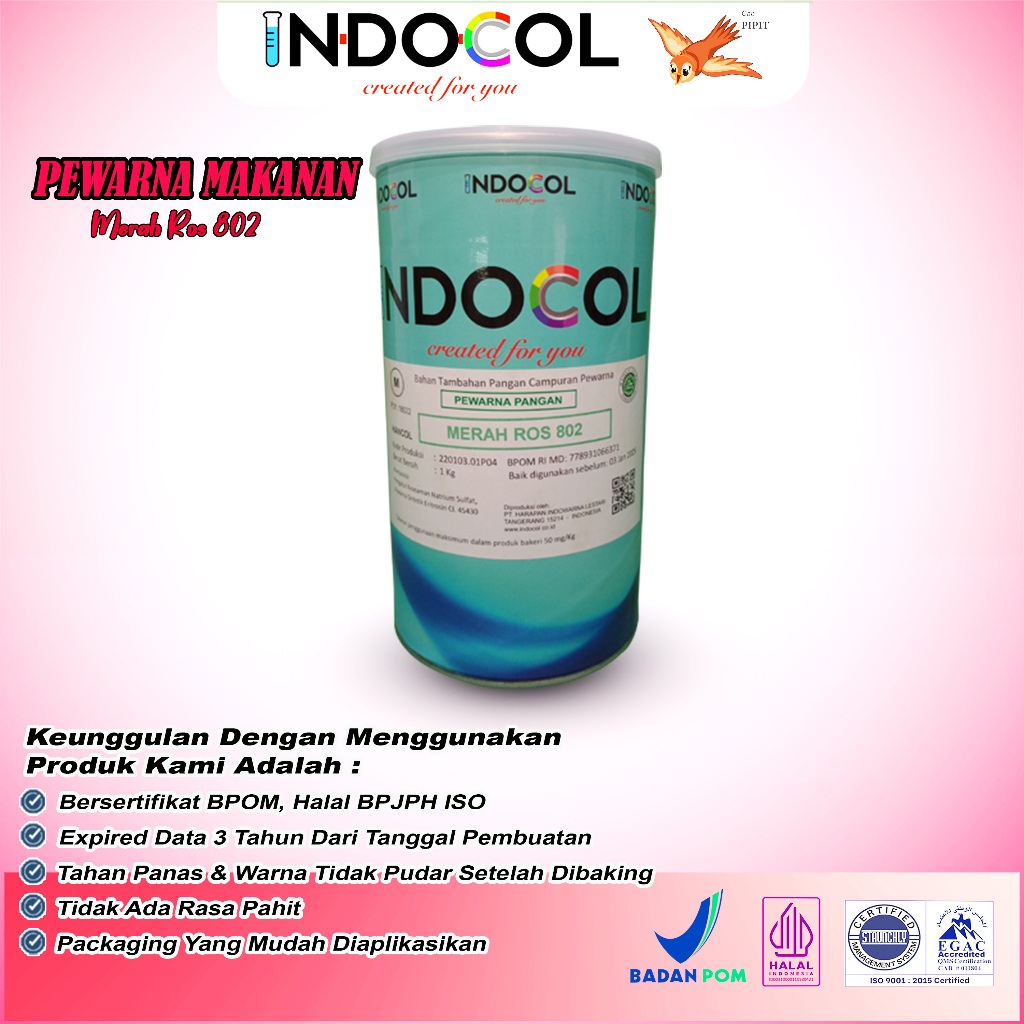 Pewarna makanan INDOCOL digunakan sebagai bahan tambahan pangan untuk memberikan warna pada makanan, minuman, kosmetik, pembersih, dan untuk segala macam warna yang dibutuhkan dimana larut dalam air (Water Soluble).