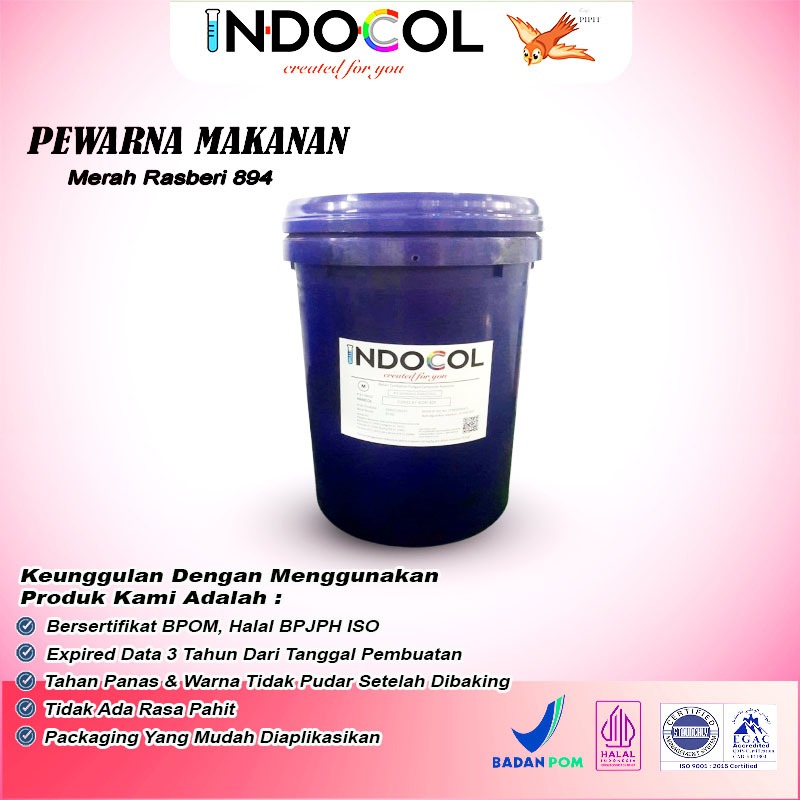 Pewarna Makanan INDOCOL Merah Rasberi 894 (Raspberry Red) @25 Kg/Pail