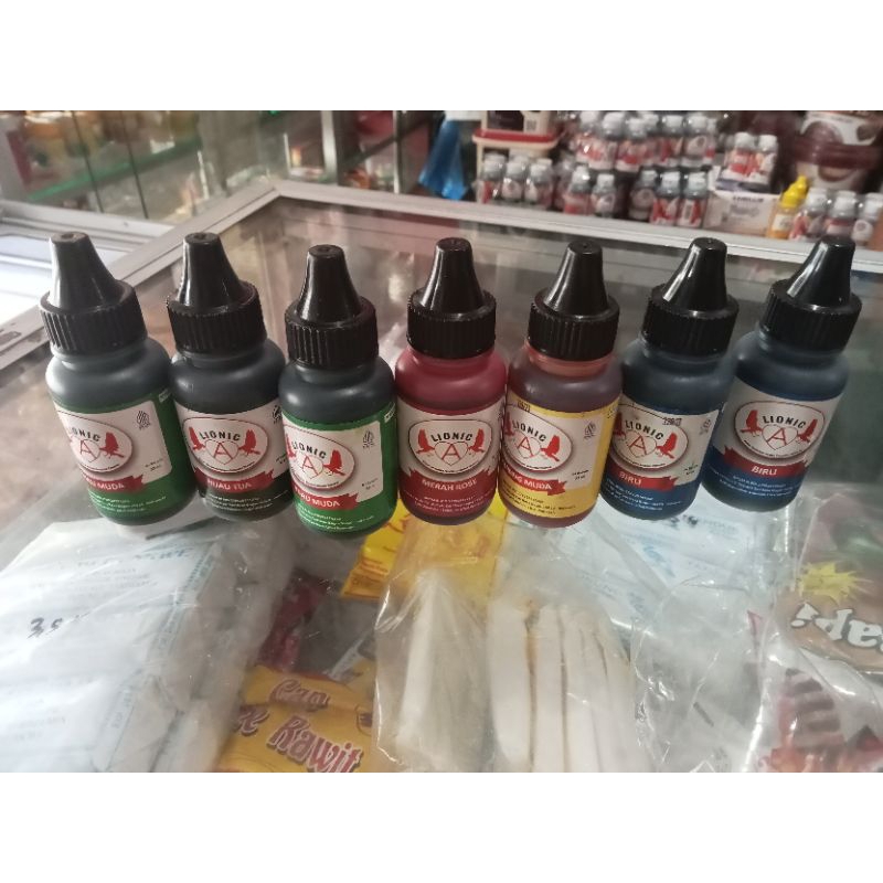 Pewarna Makanan Lionic, oil base ( Berbasis minyak ) 33 ml, Kwalitas sangat Bagus, dan menghasilkan Warna-warni yg cukup cerah. pemakaian Minim dan Bikin Kue Kilat menggoda.