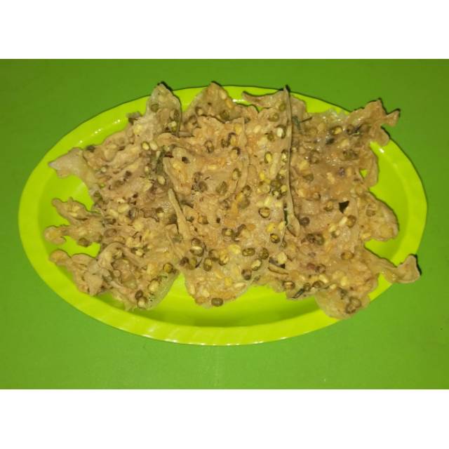 Dengan campuran Tepung beras,kacang ijo,rempah2,Enak , Gurih,T.O.P
