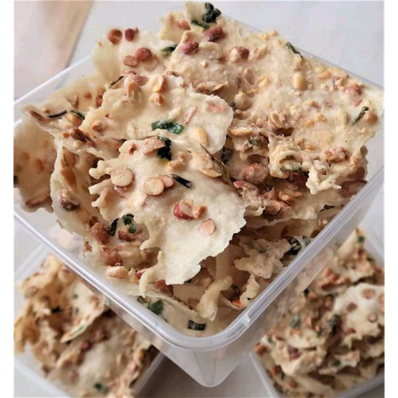Peyek Cangiya Kacang di dalam toples ukuran 1500 ml.