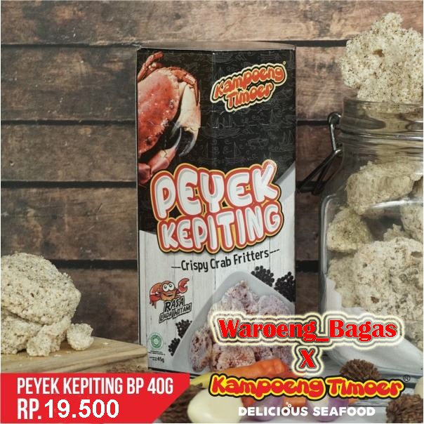 Adalah Peyek Kepiting, perpaduan antara makanan tradisional peyek (yang umumnya kacang) dan daging hewan kepiting, yang dicampur dengan rempah - rempah pilihan membuat siapapun yang memakannya akan doyan, dan pastinya ketagihan. dan melalui Waroeng_Bagas, kami berkomitmen untuk menyajikan Makanan istimewa ini di meja anda.