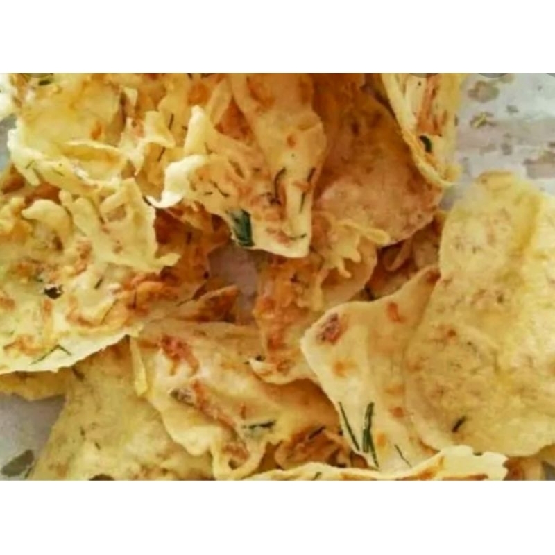 Peyek rebon gurih renyah.