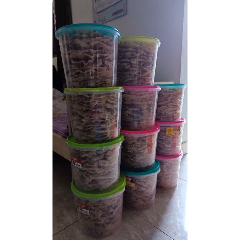 Peyek kriuk homemade dengan toples 5 liter.