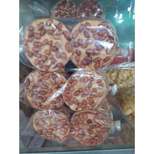 Peyek kacang (Rakik kacang)terbuat dari bahan tepung dan kacang tanah.