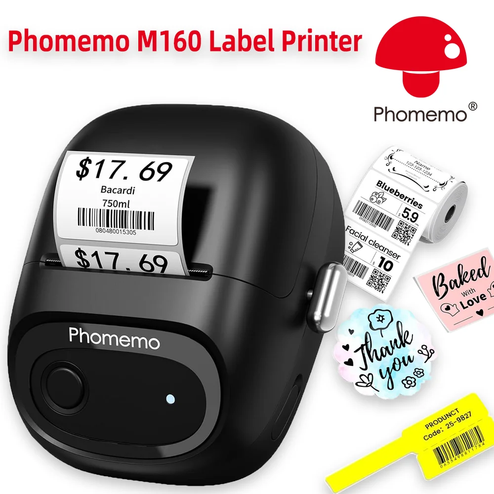 Phomemo M160 Label Maker Bluetooth Address Label Printer with Different Fonts and Templates Barcode Label Maker for Business