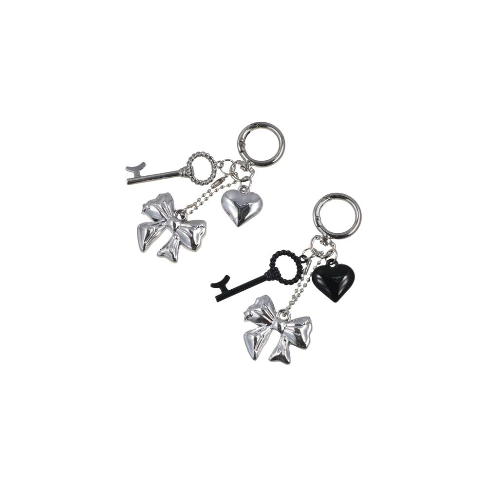 Phone Charms Y2K Bowknot Keychain Loveheart&Key Bowknot Metal Key Pendant Diy Headphone Cover чёрный