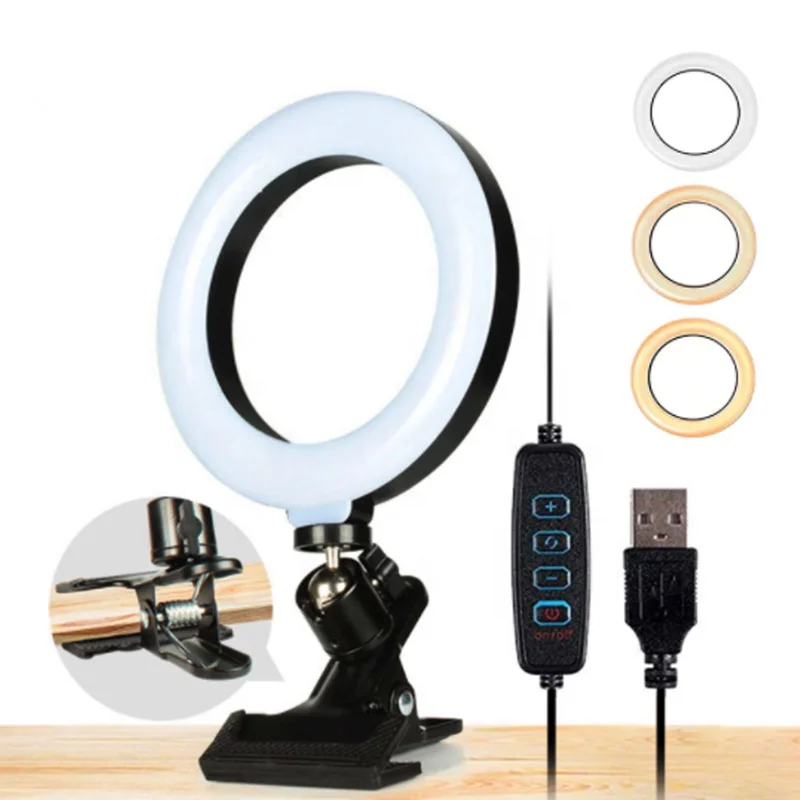 Photographic Lighting 6 Inch Selfie Ring Light Led With Laptop Computer Clip