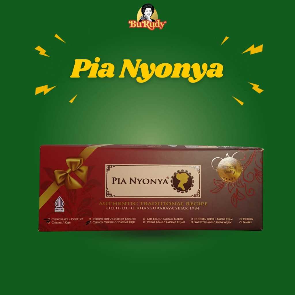 Pia Nyonya, oleh-oleh khas Surabaya, adalah camilan lezat yang terbuat dari adonan pastry lembut dan renyah, diisi dengan berbagai varian isi yang menggugah selera, seperti kacang hijau, kacang merah, atau cokelat. Setiap gigitan pia ini menawarkan kombinasi tekstur yang sempurna antara kulit yang garing dan isian yang lembut serta kaya rasa. Pia Nyonya dikenal dengan rasa yang manis dan otentik, yang merupakan hasil dari resep tradisional yang telah diwariskan turun-temurun. Cocok dijadikan oleh-oleh atau camilan untuk acara spesial, Pia Nyonya memberikan pengalaman rasa yang memuaskan, mewakili cita rasa khas Surabaya yang tak terlupakan.