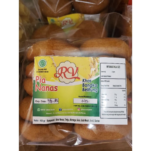 pia nanas atau Bonglipiang adalah makanan khas bangka yang berisi selai nanas. terbuat dari bahan berkualitas menjadikan pia nanas RV mempunyai rasa yang khas. makanan khas bangka yang wajib dicoba