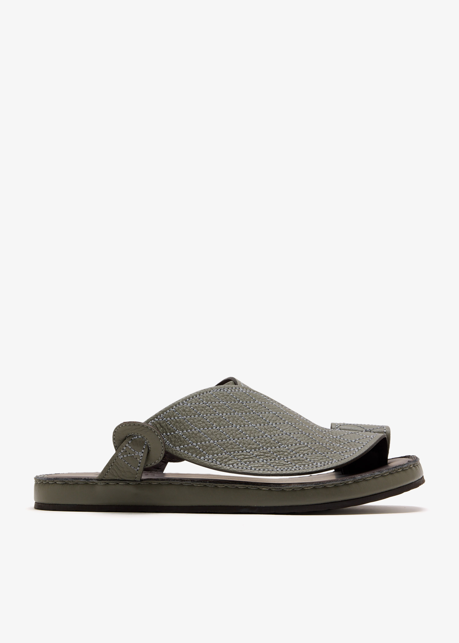 Handmade from soft deercalf leather, these sandals offer a modern twist on tradition with ring-accented straps and a distinctive toe ring detail.