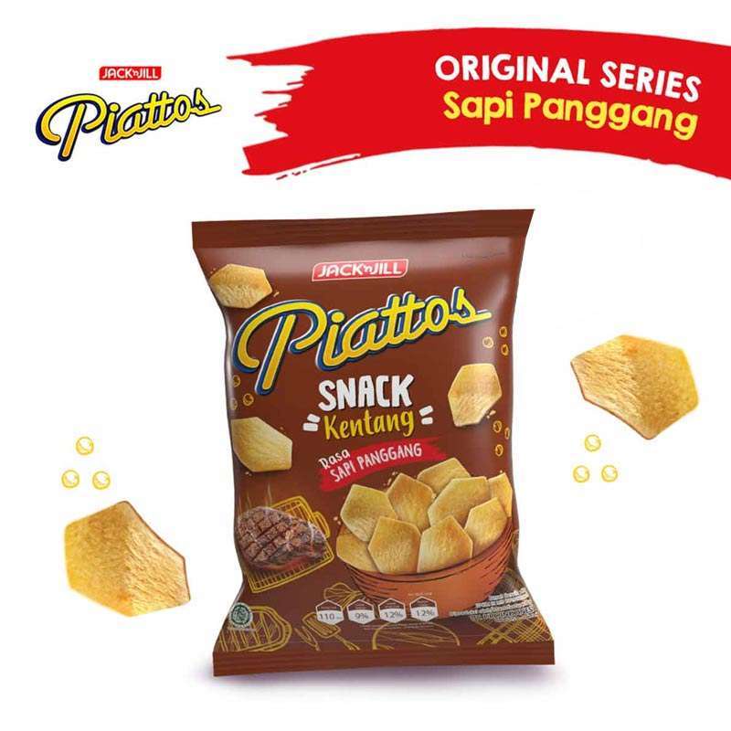 Cemilan gurih yang satu ini mungkin sudah tidak asing di Indonesia. Keripik kentang atau yang lebih dikenal potato chips merupakan snack yang setidaknya dapat sedikit mengenyangkan, karena dari kentang tersebut ada kandungan karbohidrat. Tentu agar rasanya lebih bervariasi maka snack kentang ini banyak dicampur dengan bumbu-bumbu spesial yang dapat menambah cita rasa saat di makan. Dan Piattos merupakan satu merk snack kentang yang punya banyak rasa, berikut varian rasa terfavoritnya adalah Piattos Rasa Sapi Panggang yang cocok dijadikan cemilan santai saat kumpul atau acara piknik bersama teman.