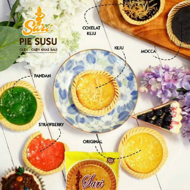 Pie Susu Sari adalah kue pie susu asli Bali buatan Home Industri sendiri dengan rasa & kualitas yang terjamin. Pie susu ini menggunakan bahan baku berkualitas tanpa bahan pengawet dan pemanis buatan. Serta aman dan HALAL di konsumsi.