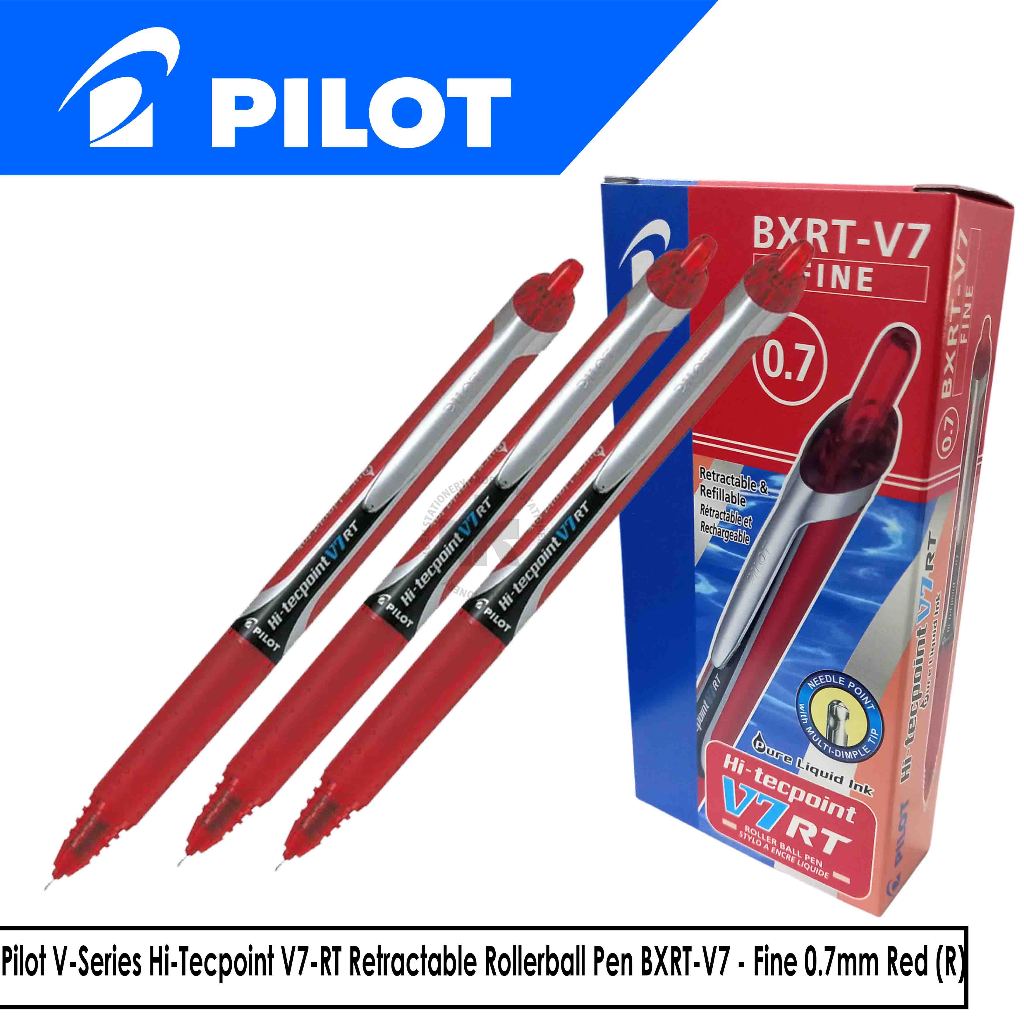 Pilot V-Series Hi-Tecpoint V7-RT Retractable Rollerball Pen BXRT-V7 - Fine 0.7mm Red (R)