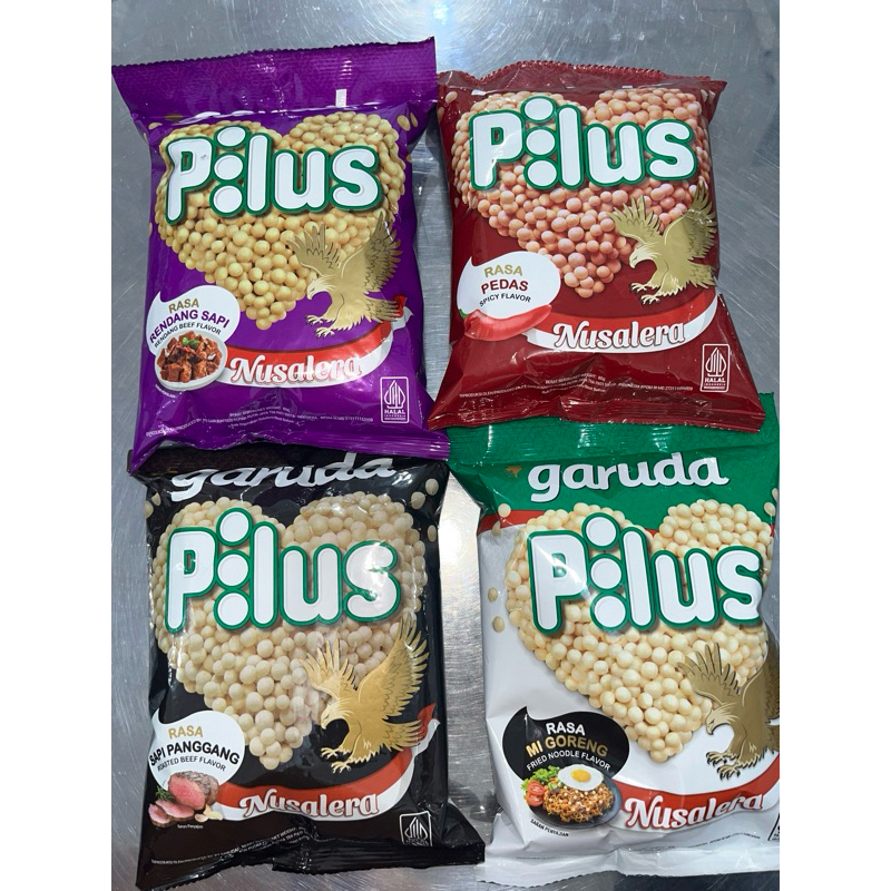 Garuda Snack Pilus rasa Pedas adalah snack berbentuk bulatbulat kecil dengan rasa yang gurih dan pedas.