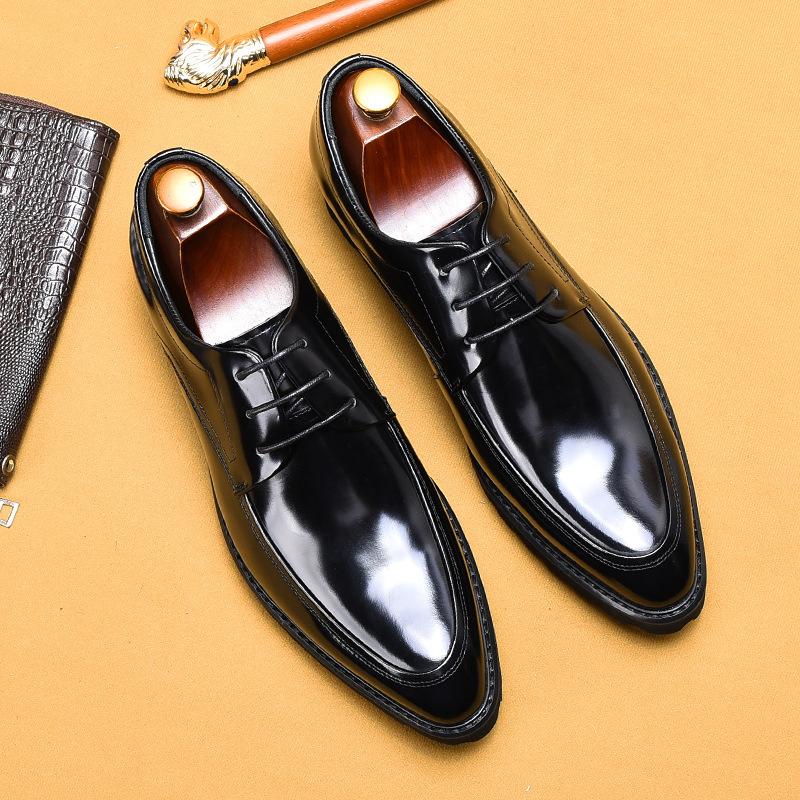 Pinduoduo поставляет цельные волосы, глянцевые кожаные туфли, натуральная кожа с острым носком, деловая повседневная мужская обувь 44 чёрный