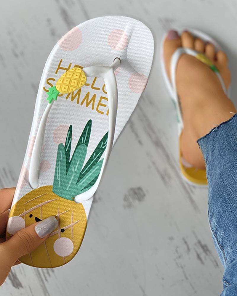 Pineapple Pattern Open Toe Flip Flops, White