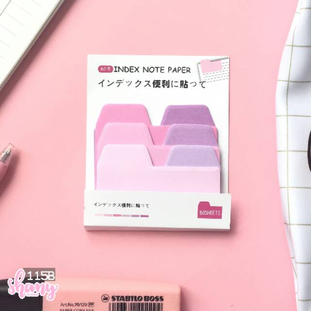 sticky notes berbentuk folder dengan pilihan warna yang bervariasi dan per satu warna, shade-nya pun udah banyak banget. rasanya kayak beli banyak sticky notes padahal cuma punya satu hemat banget!