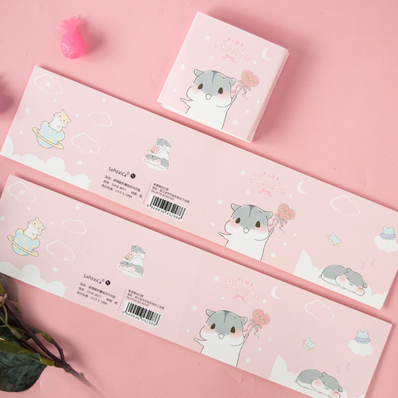 Phoebe adalah nama hamster kecil berpipi tembem ini. Koleksi catatan tempelnya yang berwarna pink akan membantumu mengingat hal penting dan merencanakan aktivitas sehari-hari. Sticky notes berbagai ukuran ini mudah digunakan, praktis disimpan.