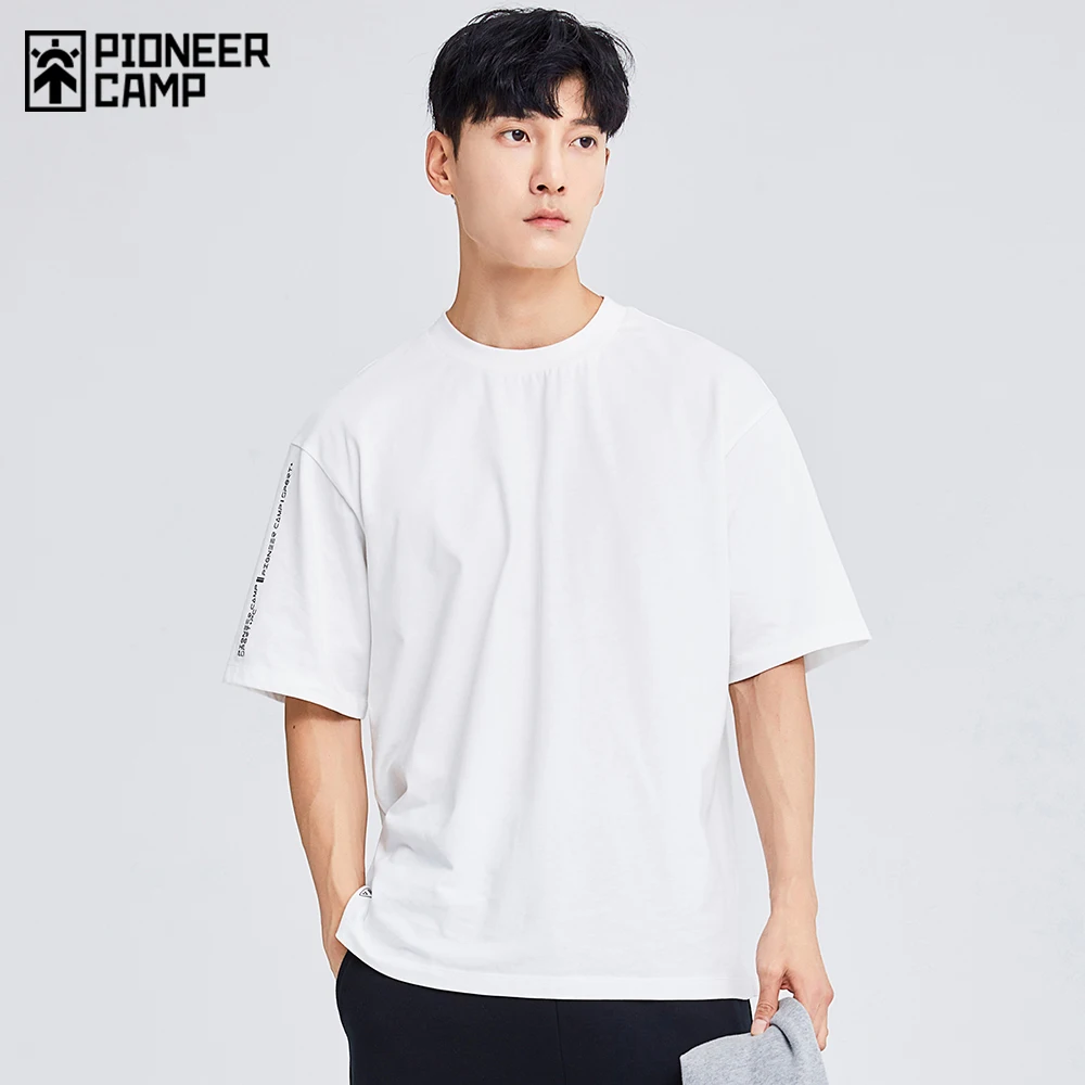 Pioneer Camp футболки из 100% хлопка, Мужская Уличная футболка с буквенным принтом, белые футболки с рукавами для мужчин XTS102173
