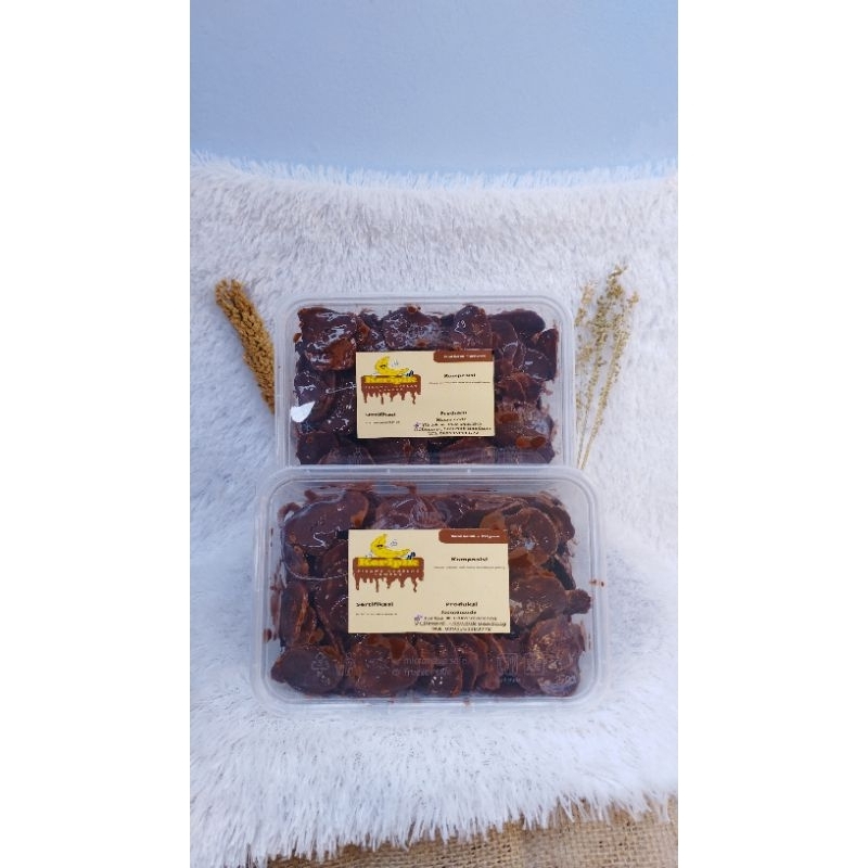 keripik pisang cokelat lumer terbuat dari bahan bahan berkualitas dan fress