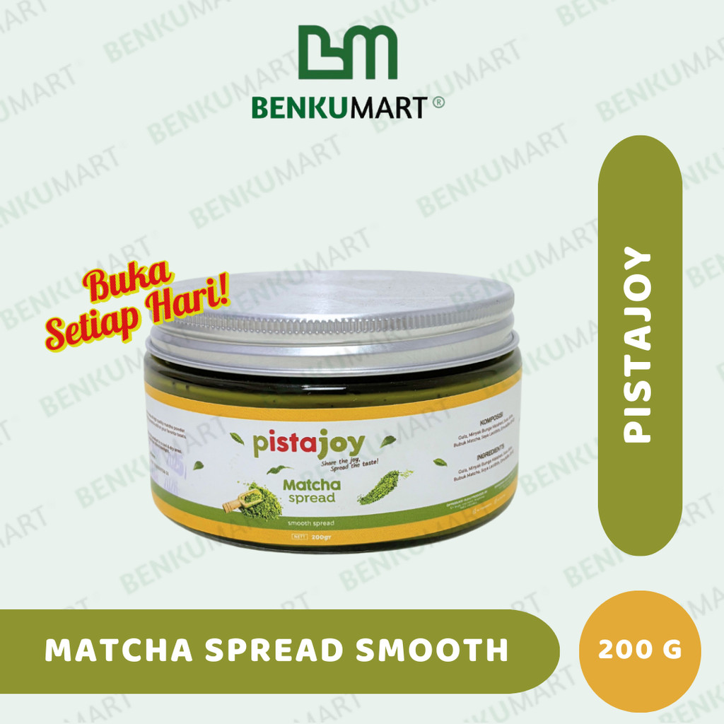 Kenalkan PistaJoy Matcha Spread Smooth, selai lembut dengan sentuhan matcha premium yang khas. Dibuat dari bahan pilihan untuk menghadirkan rasa manis, creamy, dan aroma matcha autentik di setiap olesan.