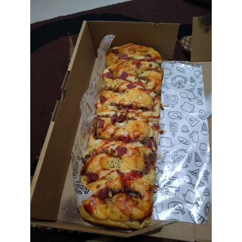 Roti lembut dengan isi daging dan keju yang full, dijamin ketagihan.