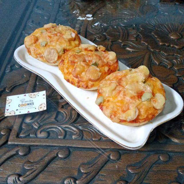 Pizza dengan diameter 8cm, dengan isi 5pcs. Dapar disimpan di freezer dalam 1 bulan. Jika ingin di konsumsi anda dapat langsung mengeluarkan nya saja dan siap santap.